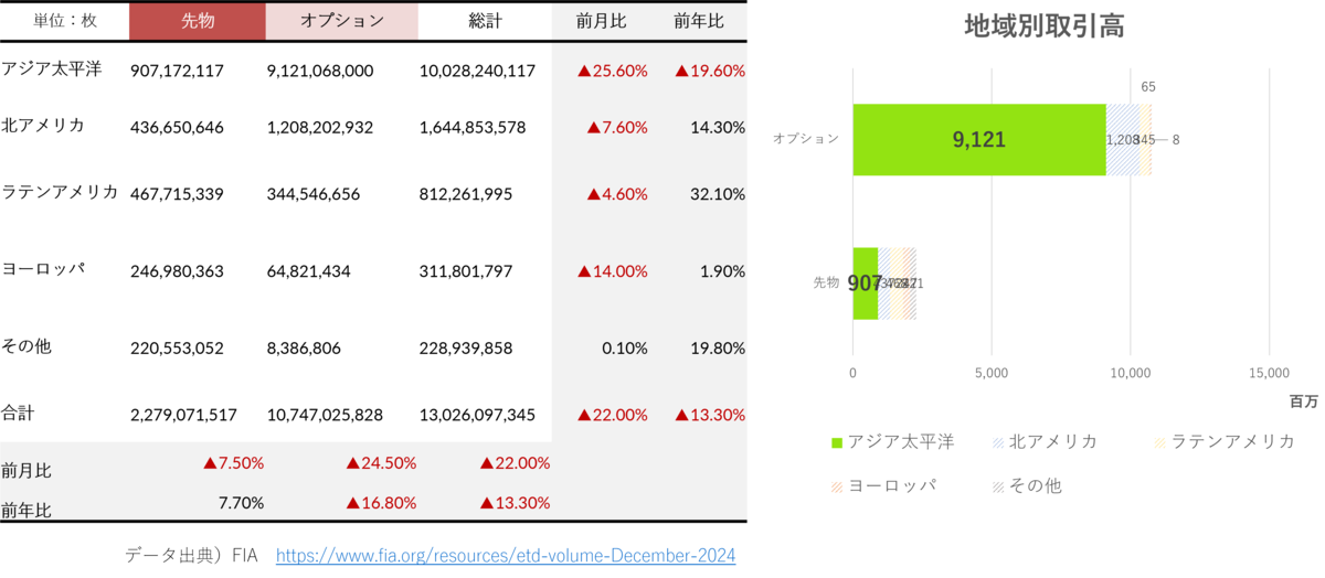 先日、米国先物業協会(FIA)から2024年12月分のデリバティブ取引所のカテゴリー別・地域別シェアが公表された。
